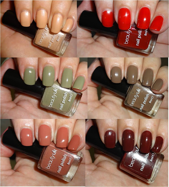 Hello lacquer lovers and West End Girls!! Today I have a tres chic nail polish set from Beauty UK called 'West End Girl'. A set of six 8ml polishes in bang on trend shades as follows: a cream with an oh so gorgeous shimmer running through it, bright red, sage green, taupe, terracotta & burgundy.....to the Pics!!