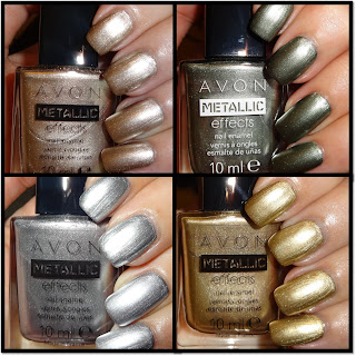 I'm very pleased to show you 4 super Avon Metallic nail polishes, recently purchased from the Avon sale leaflet for 99p each! Very shimmery and I'm sure they'll be fab for stamping as I've already got & tried Avon Arctic Steel from the metallic range and it's a brill stamper. They paint very well, nice brushes, quite thick polishes, you could get away with one coat if pushed for time. So if you see them in the Avon Sale Brochure I highly recommend them. I'm not an Avon Rep and have no affiliation with them what so ever, I just want to share these lovely metallictastic polishes with you.