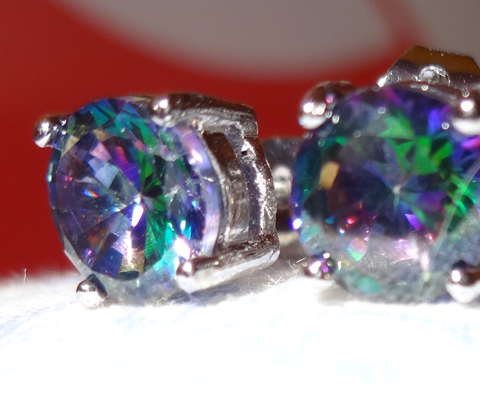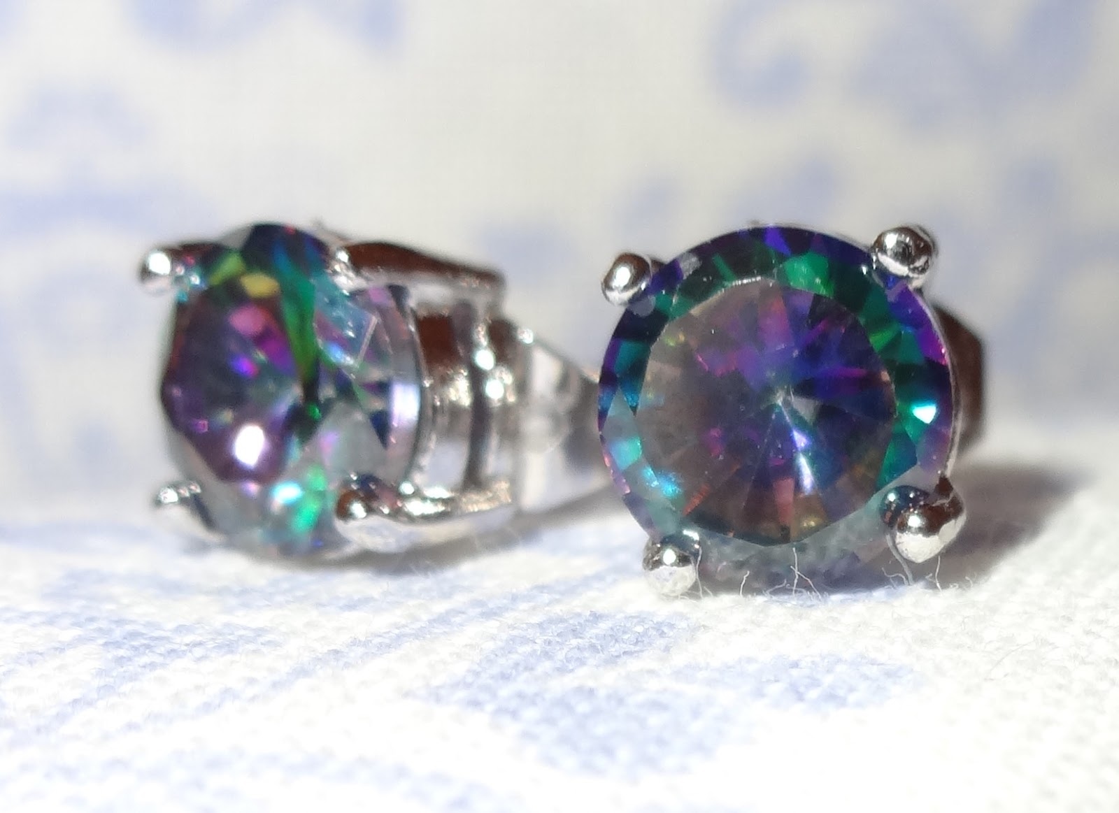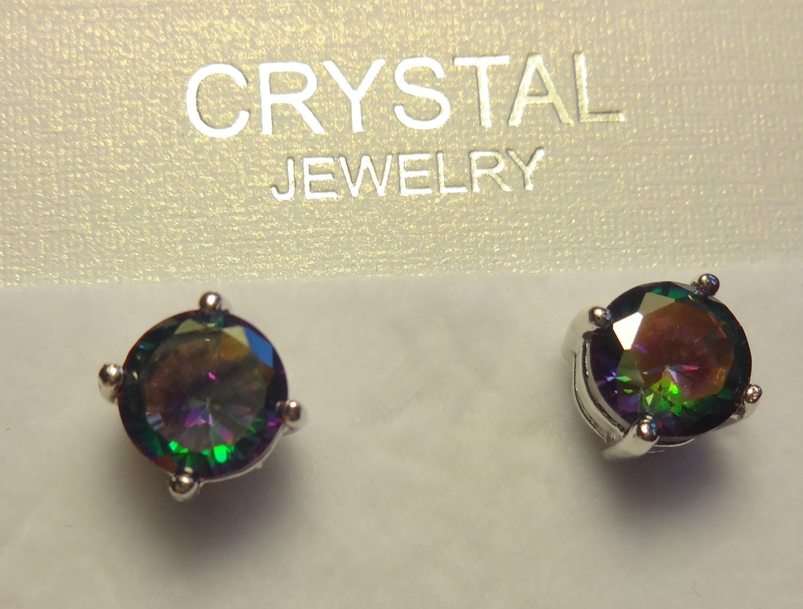 I've got some really gorgeous Mystic Crystal Silver Tone Stud Earrings from Born Pretty Store to share with you. The dark purple stones are held in a 4 prong silver tone setting with butterfly backs. When the light hits the stones you see a rainbow of colours, greens, turquoise, blues, purple & lilac - wonderfully mystical! They remind me of Mystic Topaz stones and look more expensive than the bargain price they are. The round brilliant cut stones are 6mm in diameter and I think could be mistaken for real gemstones. Comfortable to wear and suitable for both casual and going out.