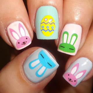 So here's my first Easter Mani of the year, a pastel ombre with cute bunnies and a painted egg which are water decals from Sparkly Nails. The pack includes 20 decals and currently costs £1.65 per pack.