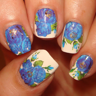 The 'Blue Roses' full wrap water decals currently cost £0.89 and will cover 10 nails.  Available at Charlies Nail Art who have an huge range of nail art items.