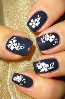 I've got a lovely pack of Flower Nail Stickers from Nail Art UK to show you. There are a total of 24 individual stickers. Beautiful white flower and butterfly nail art decals with clear rhinestones. The Flower Nail Stickers are on a clear plastic sheet which really helps to guide you where to place the sticker on your nails. All you have to do is peel off from the clear plastic sheet, apply to your nails and seal with top coat. Simple, fun & effective. Very easy to use and highly recommended. My base colour is a charcoal grey and the white sticker really pop against the dark background. They would also be great on toes.