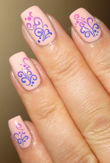 Soft pastel pink nails topped with Abstract Water Decals from Nail Art UK are the order of the day. There are 20 decals per pack with the swirly designs merging from purple to mauve to pink. Each decal is slightly different in size and design and there plenty for 2 full manis. I applied them over Nails Inc Mayfair Lane, the decals will look great over lots of light to medium shades.