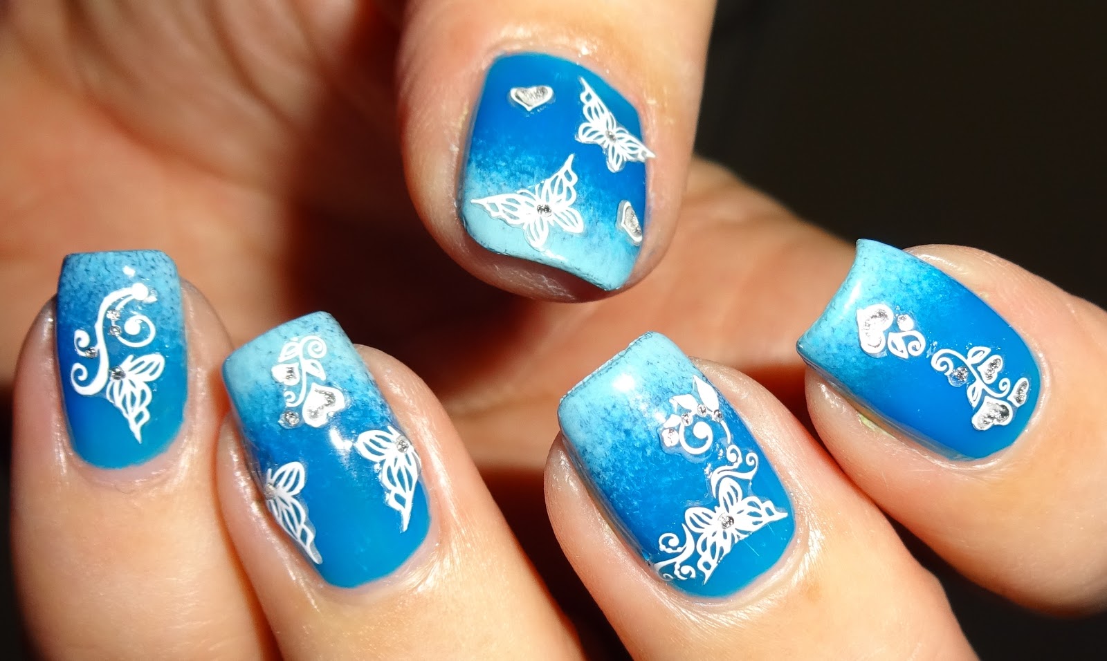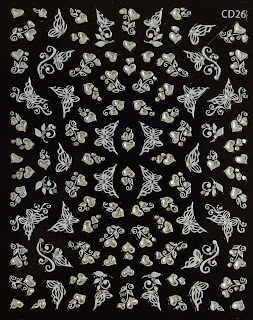I've another lovely pack of Flower & Heart Nail Stickers from Nail Art UK to show you. There are a whopping 100 individual stickers per pack, they'll keep you going for ages, and how about using them on your toes - oh yes! Beautiful white butterfly & heart nail art stickers with clear rhinestones. The Flower & Heart Nail Stickers are on a clear plastic sheet which really helps to guide you where to place the sticker on your nails. All you have to do is peel off from the clear plastic sheet, apply to your nails and seal with top coat. Simple, fun & effective. Very easy to use and highly recommended.