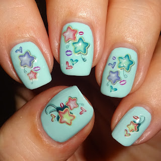 Fresh minty green nails with pastel star water decals from Nail Art UK are today's nail design. There are 20 decals per pack with different coloured stars, hearts and pouty lips. Each decal is slightly different in size and design and there's plenty for 2 full manis. I applied them over Avon Mint To Be, the decals will look great over lots of light to medium shades.