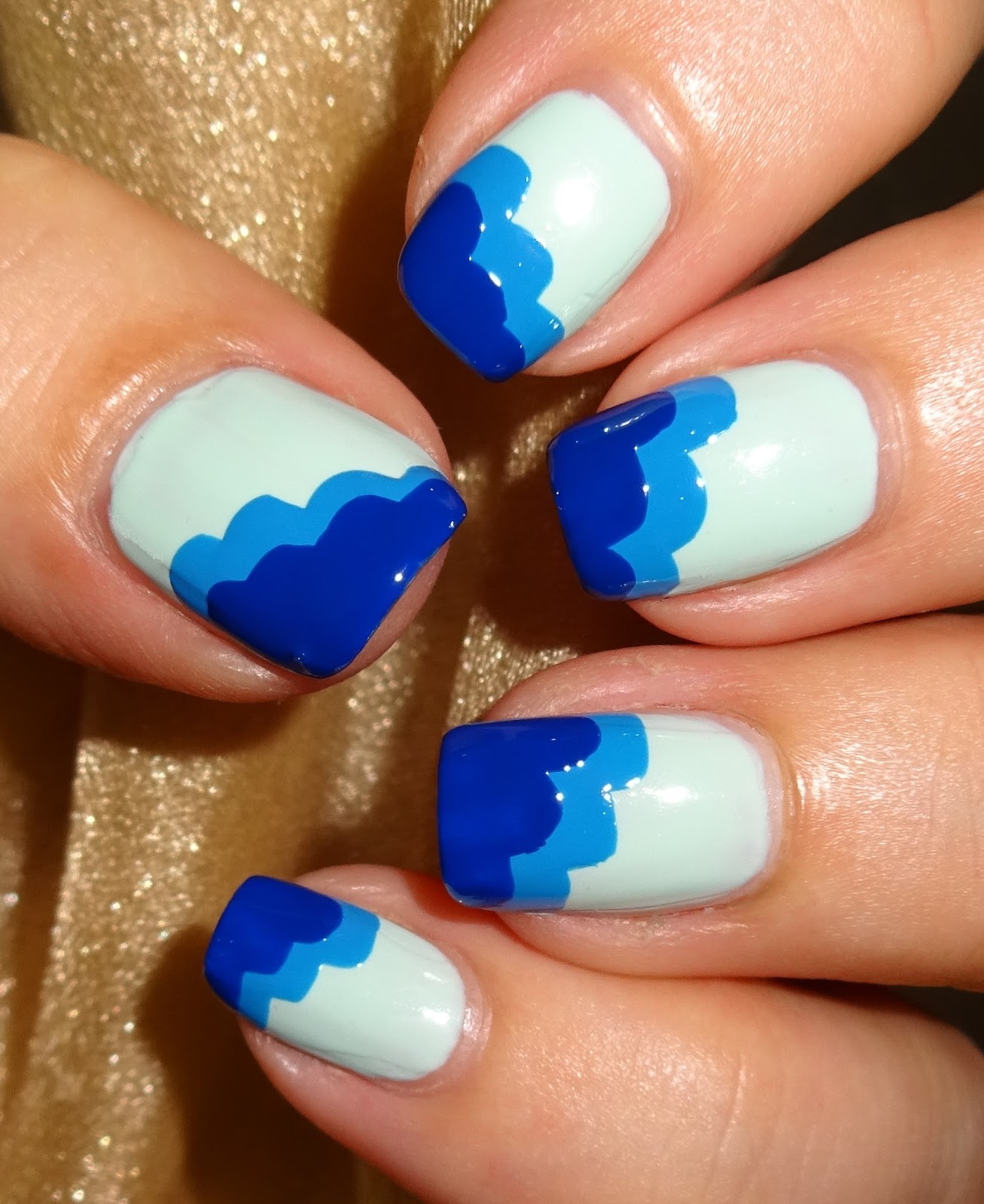 This isn't about painting your nails with fluffy white clouds, it's a term used for creating a scalloped tip, usually 3 colours. The scallops being the edge of the cloud rather than the whole cloud. It's also a great method for reviving an old mani when the tips have chipped or worn. No special tools or equipment needed.