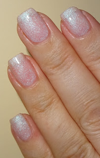 Today I'm reviewing Digital Illusion, a sheer milky pink with iridescent shimmer. This one dries down matte and I applied Avon's Gel Shine top coat to bring out the opaline shimmer. A perfect bridal shade or base for a French mani.