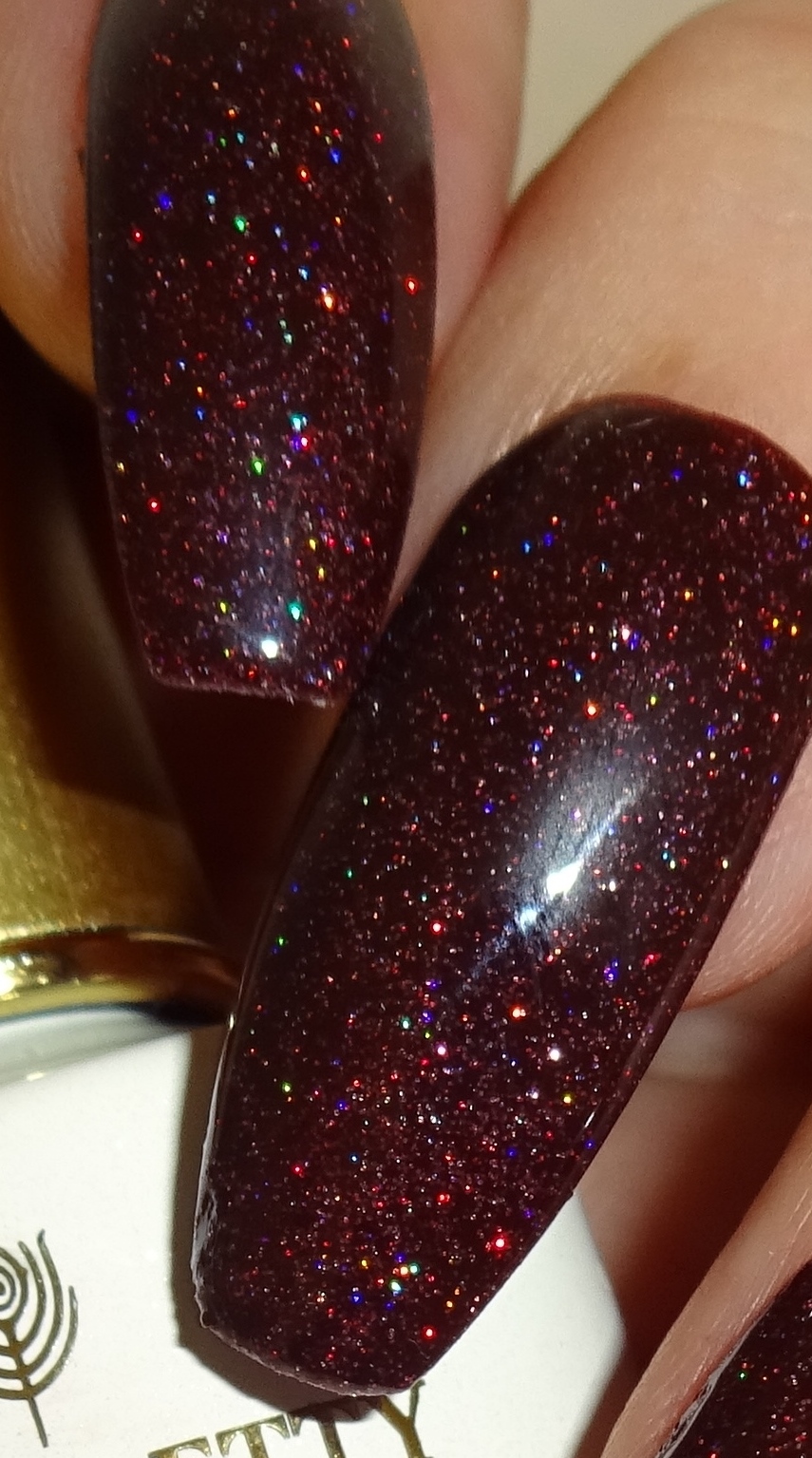 For this mani, I used a UV Gel nail polish from Born Pretty Store named Sicily Past, which is a deep plum brown with holographic particles. The polish is from 'The name of Love' series, a collection of 12 holographic shades.